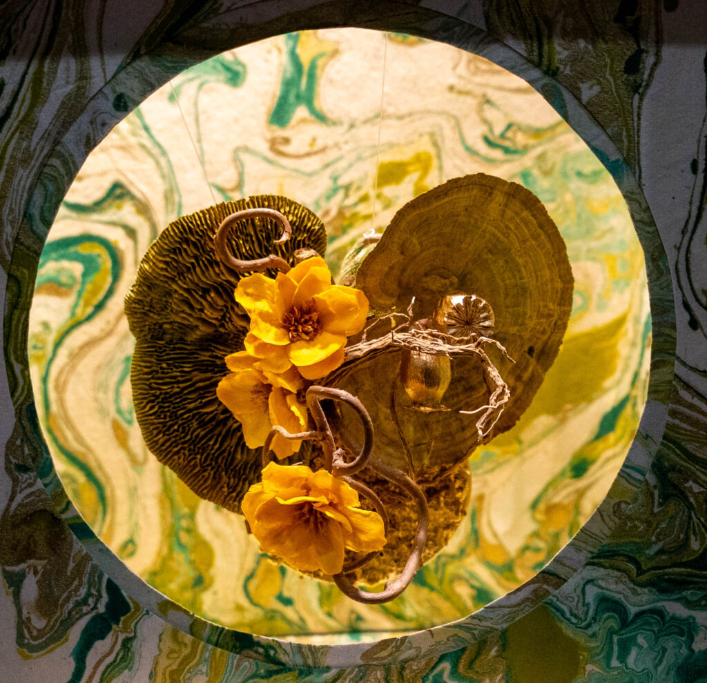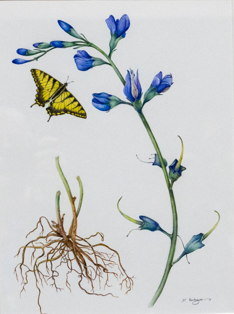 The exquisite artistry of The Philadelphia Society of Botanical Illustrators comes to life in their exhibit of native plants. They explore the intricate roots, rhizomes and fungal networks that sustain these plants. (My apologies to the artist; I didn’t record their name.)